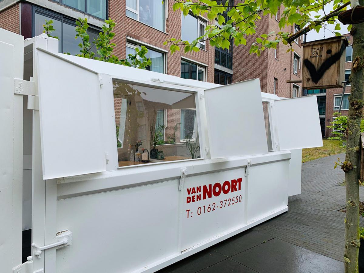 Seniorenpartner De Wijngaerd in Made heeft vandaag (dinsdag 28 april) uit handen van Van den Noort B.V. een unieke ontmoetingscontainer in ontvangst mogen nemen. Het gaat hier om een afvalcontainer omgebouwd tot ontmoetingsplaats. Op deze manier worden de bewoners in staat gesteld om hun familieleden weer even te ontmoeten en om in een veilige omgeving buiten het verpleeghuis een gesprek te kunnen voeren.