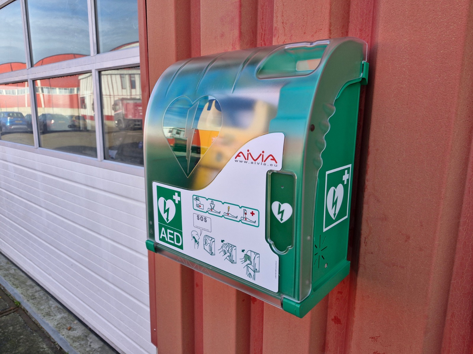 De AED heeft een vaste en goed bereikbare plek gekregen aan de voorzijde van de buitengevel van de werkplaats op ons terrein bij de Recycling / weegbrug in Dongen. Door de plaatsing van dit apparaat versterken wij onze mogelijkheden om in geval van een medische noodsituatie, zoals een hartstilstand, snel en effectief te kunnen handelen.