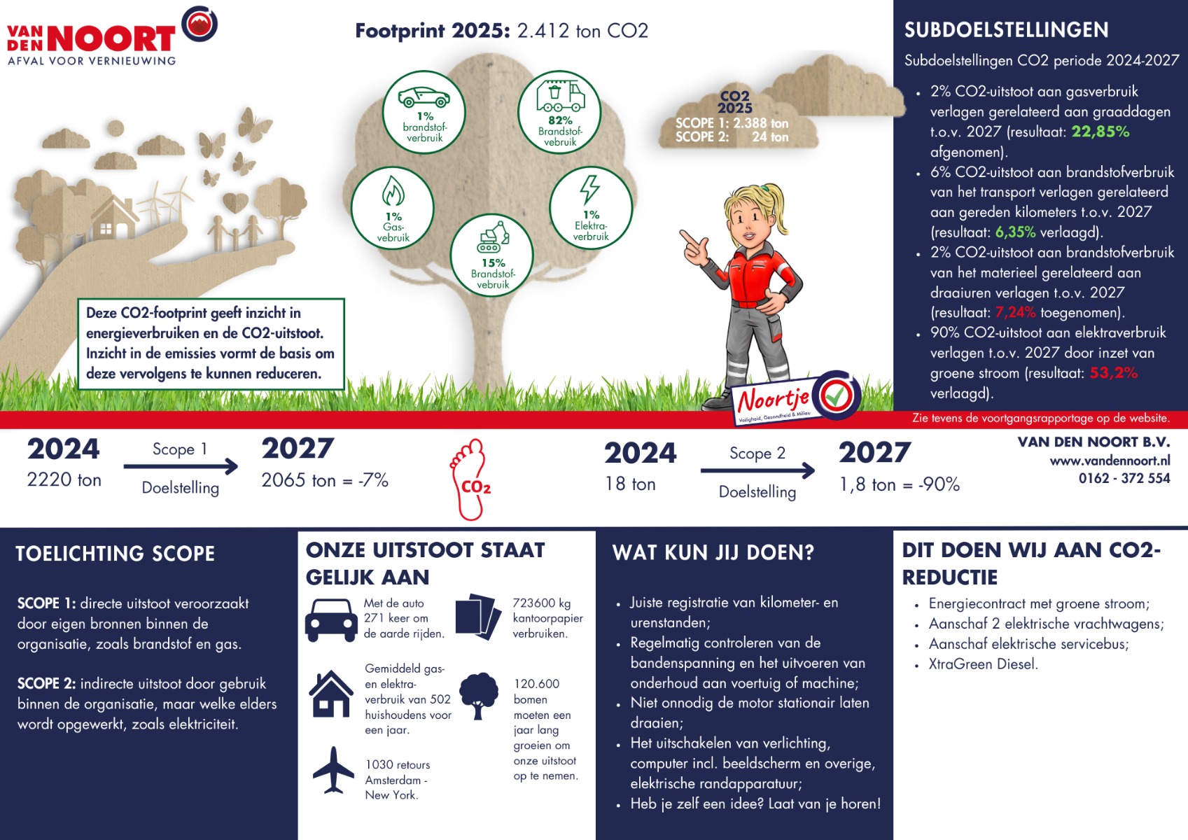 Deze CO²-footprint geeft de uitstoot weer van de processen die plaatsvinden binnen Van den Noort.